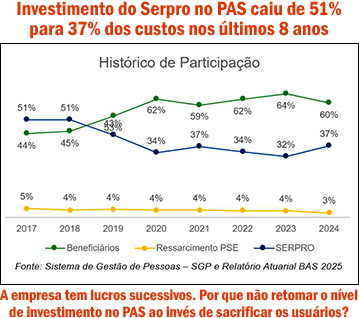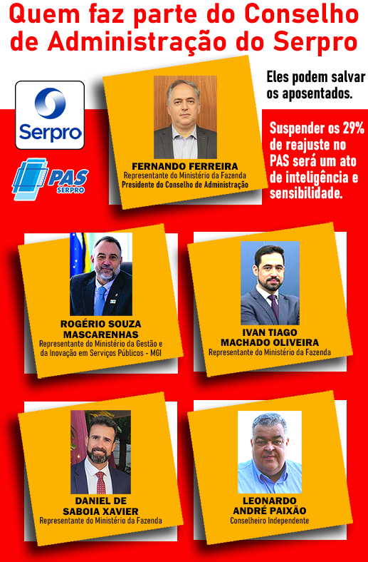 Os conselheiros que decidem esse assunto, listados acima (o representante dos empregados não vota neste caso), têm poder e a responsabilidade para reexaminar o tema e ponderar. Estão lidando com pessoas e com a postura da empresa perante seus empregados. O PAS/Serpro não é um plano privado, que precisa remunerar seus acionistas. É um benefício trabalhista, oferecido pela empresa. Não é custo, é investimento em qualidade funcional e técnica. Certamente eles entendem isso.