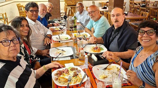 Na última reunião (foto), em 11 de março, contamos com a participação firme e animada de colegas aposentados do Serpro. Venha reencontrar amigos! Confirme sua participação pelo nosso WhatsApp: 21 98055-3939.