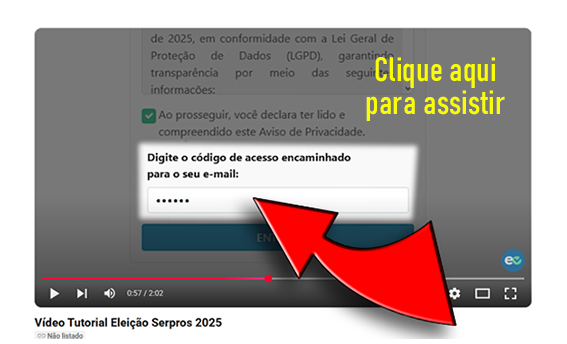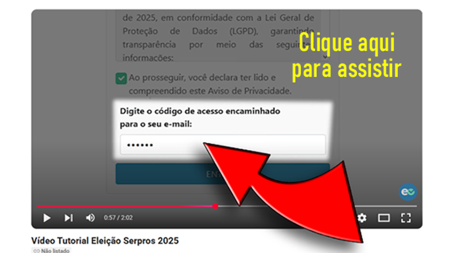 Só no dia 29, primeiro dia da votação, o SERPROS divulgou um vídeo com a explicação do passo a passo para o participante votar nessas eleições. Se quiser tirar alguma dúvida, assista clicando na imagem abaixo.