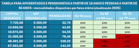 - Planos de Seguro de Vida que podem ser contratados por associados com até 75 anos, de acordo com o plano escolhido;
