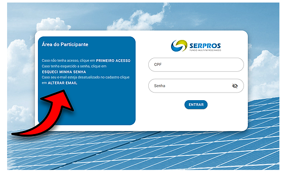 Se o seu e-mail já constar no sistema do SERPROS, você pode ir para as etapas "Primeiro acesso" ou "Esqueci minha senha".